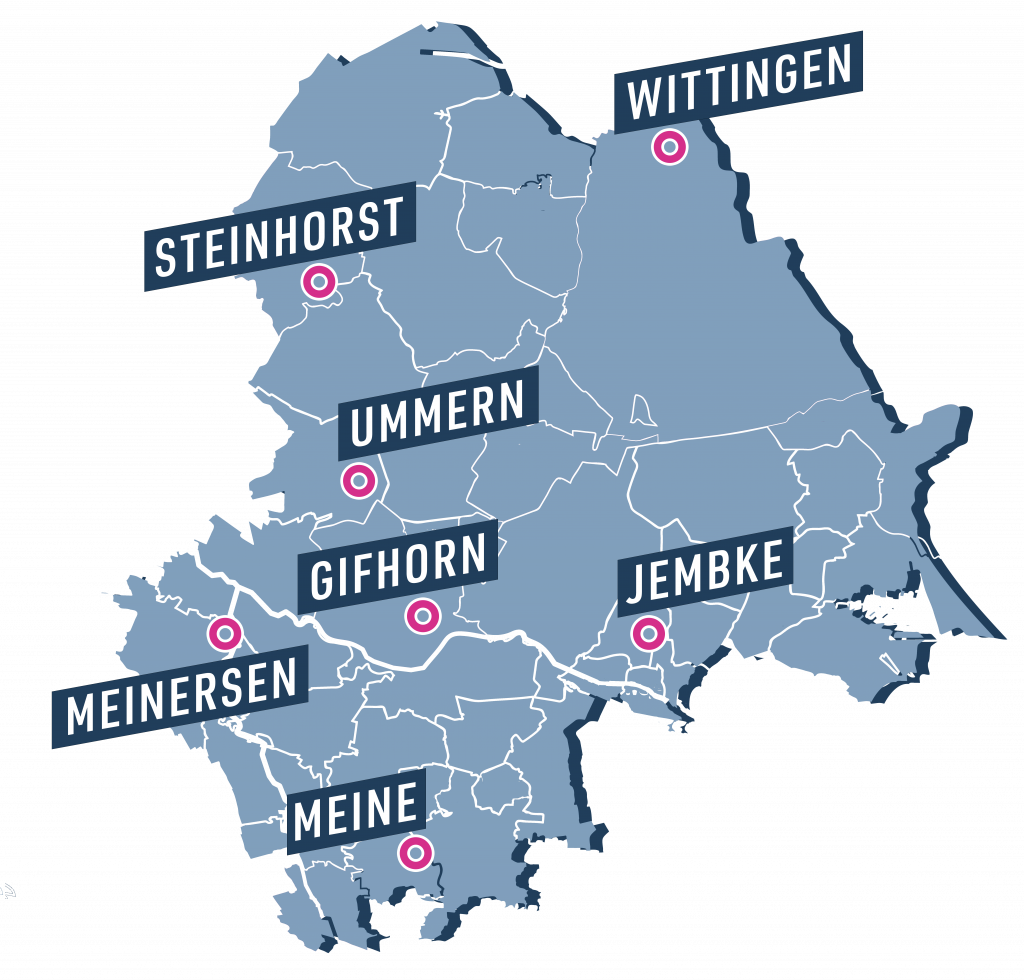 Der Landkreis Gifhorn bildet mit seinen zwei kreisangehörigen Städten, einer Einheitsgemeinde und sieben Samtgemeinden mit insgesamt 38 Mitgliedsgemeinden eine kommunale Familie. Hier stehen attraktive Wohngebiete in schöner und facettenreicher Naturlandschaft zur Verfügung. Neben guter Infrastruktur besticht der Landkreis Gifhorn durch seine zentrale Lage zu den umliegenden Oberzentren Braunschweig und Wolfsburg.